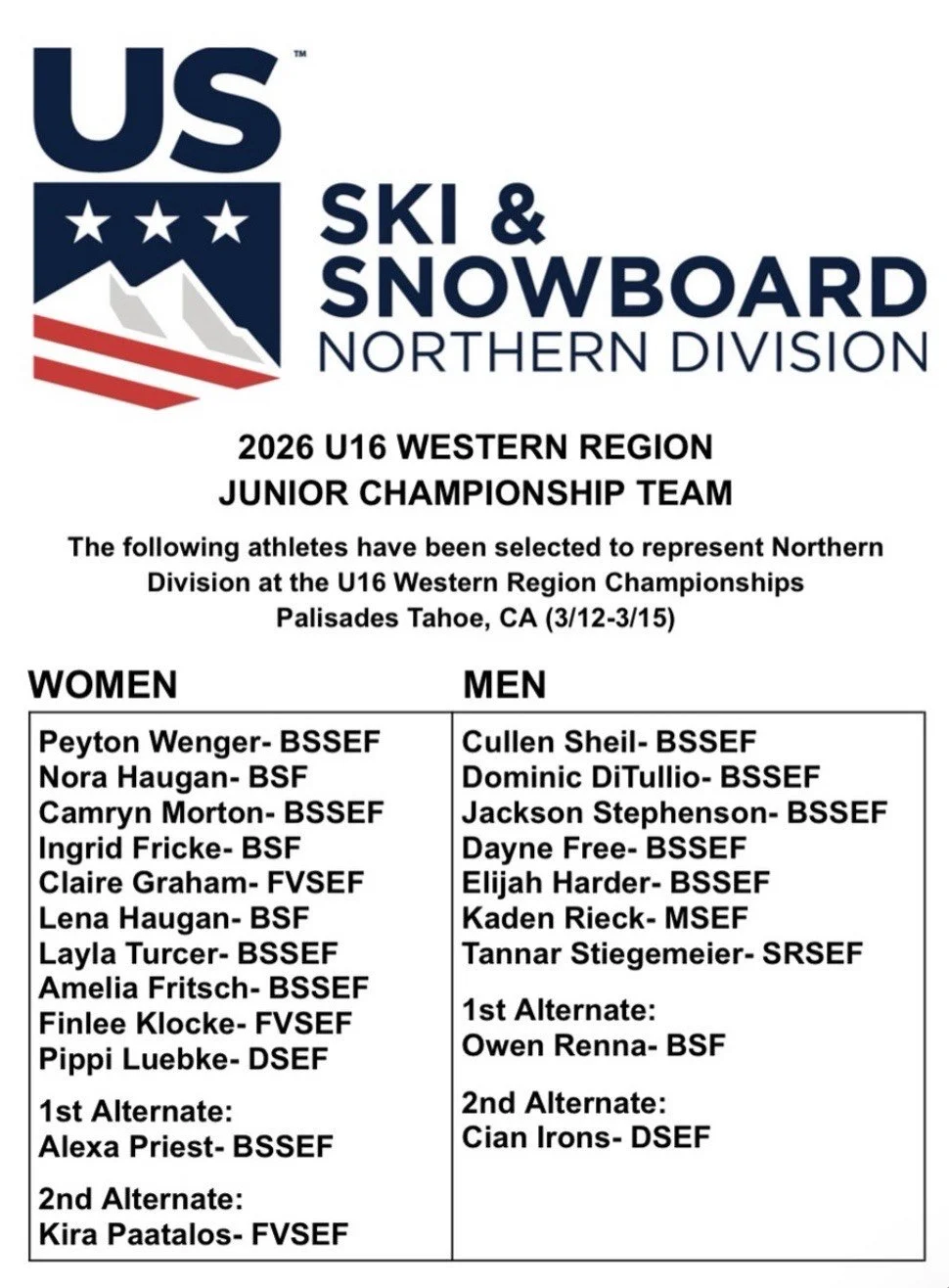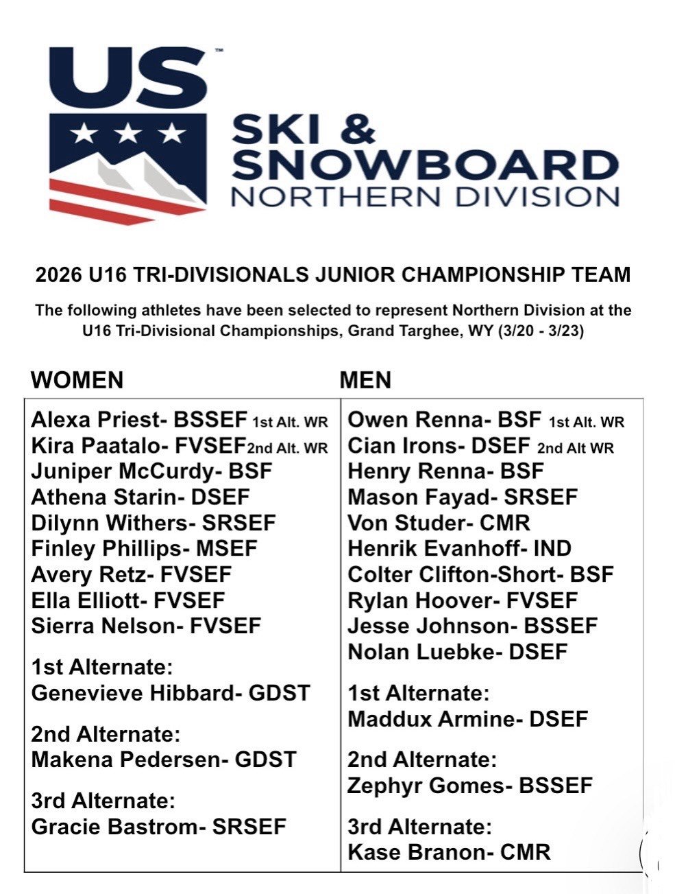 Northern Division is one of five divisions in U.S. Ski and Snowboard’s Western Region, established under the authority of the U.S. Ski and Snowboard Alpine Sport Committee and responsible for the regulation of the sport of Alpine Ski Competition.